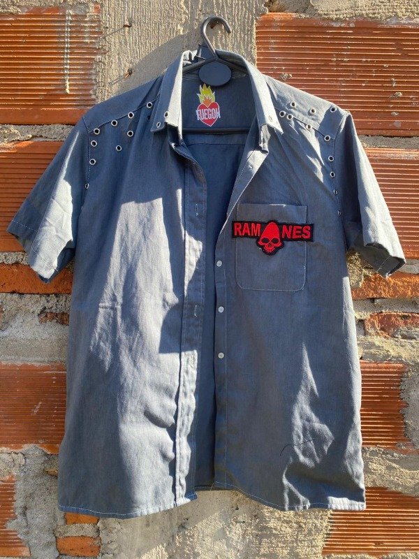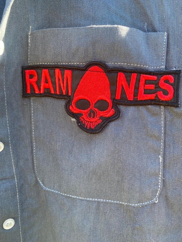 Detalle de ojalillos metálicos y parche bordado Ramones Calavera