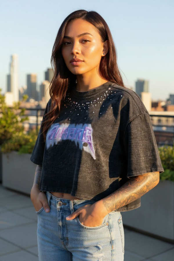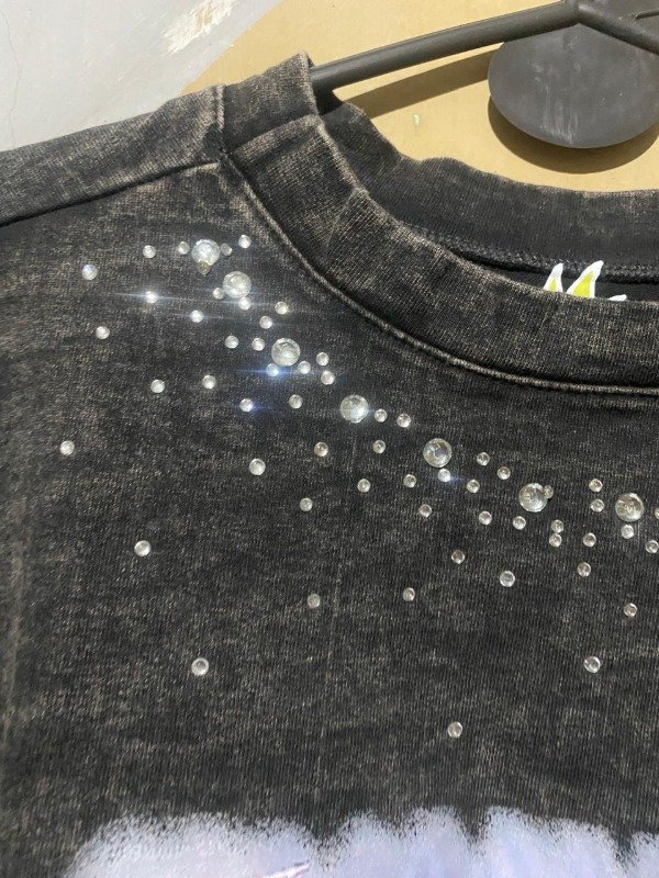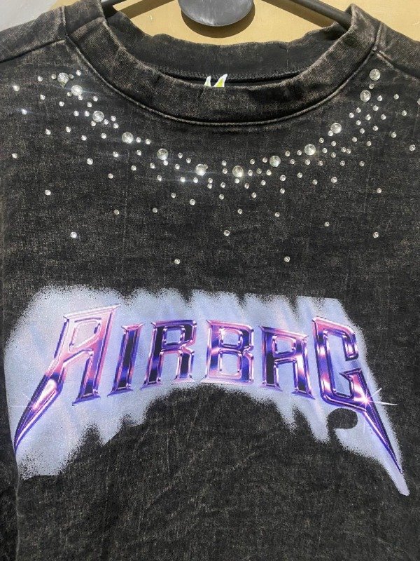 Estampa única Airbag en DTF con detalle de strass alrededor del cuello en distintos tamaños