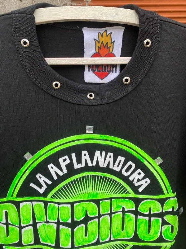 Detalle de gemas cosidas a mano alrededor de la estampa