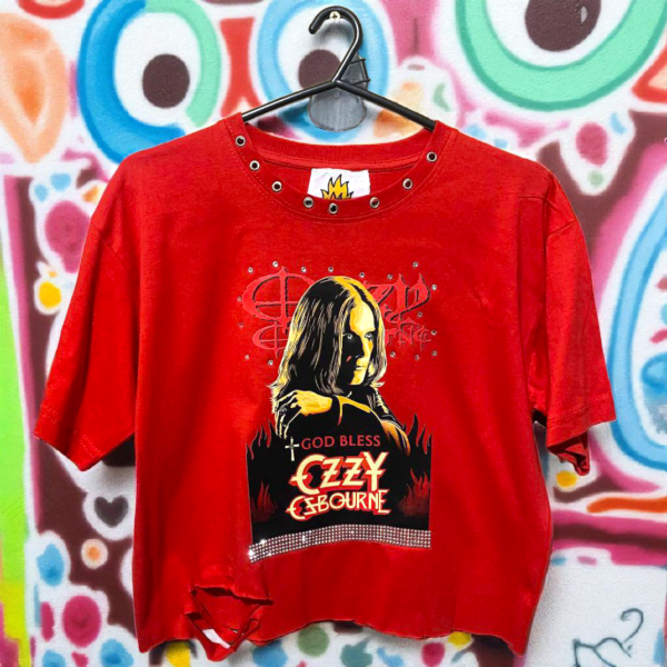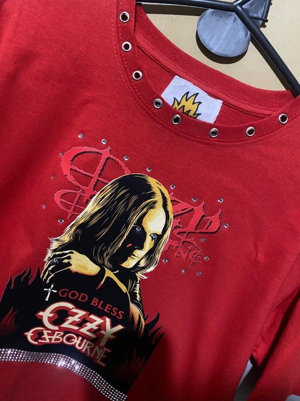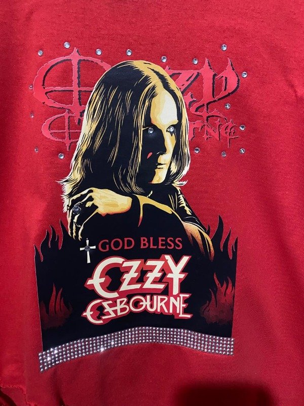 Estampa única Fuegoh Ozzy en DTF con detalle de strass alrededor y debajo de la estampa