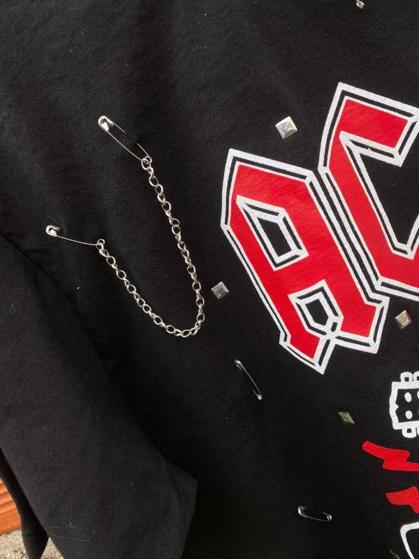 Detalle de tachas alrededor de la estampa y alfileres de gancho