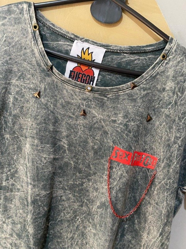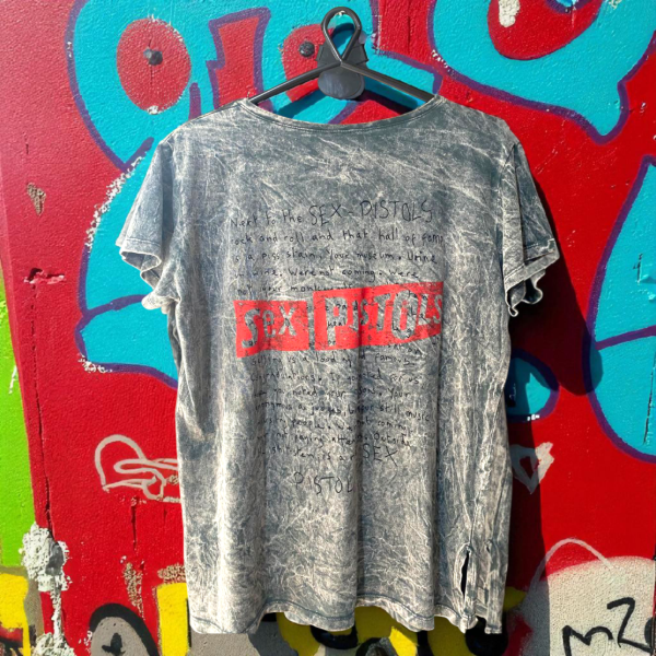 De algodón nevado, estampa Sex Pistols logo en delantero y completa con glitter en espalda
