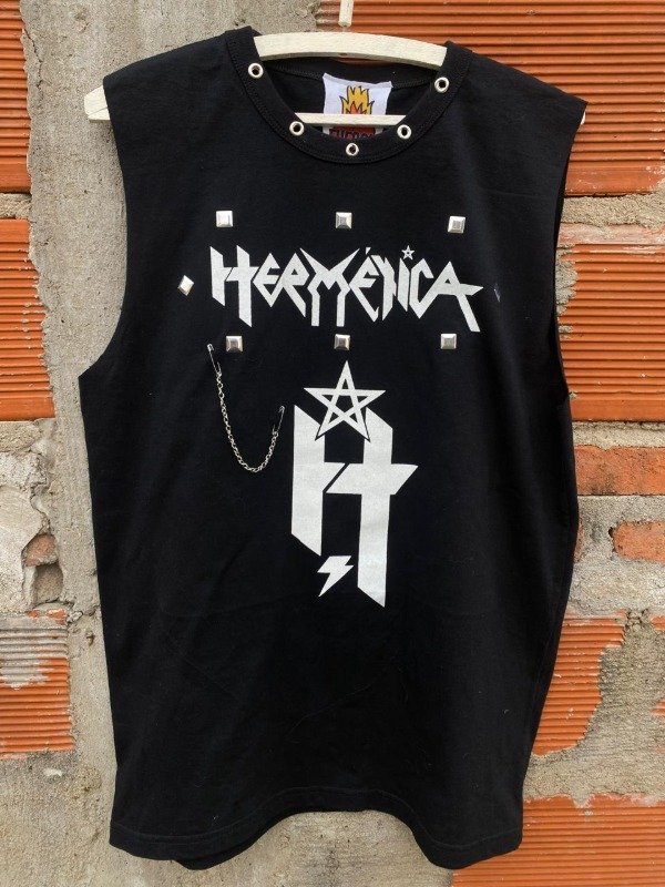 Detalle de tachas alrededor de la estampa y ojalillos metálicos en cuello.