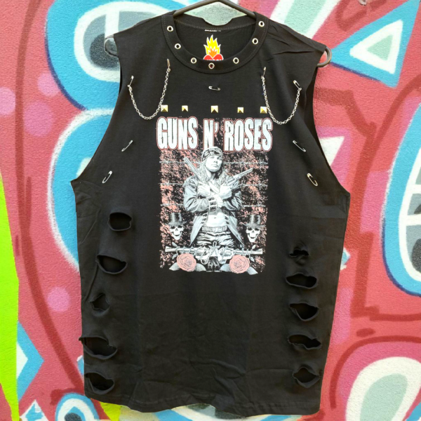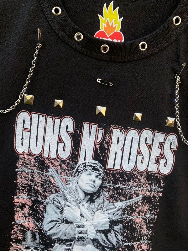 Detalle de tachas en la parte superior de la estampa y alfileres de gancho