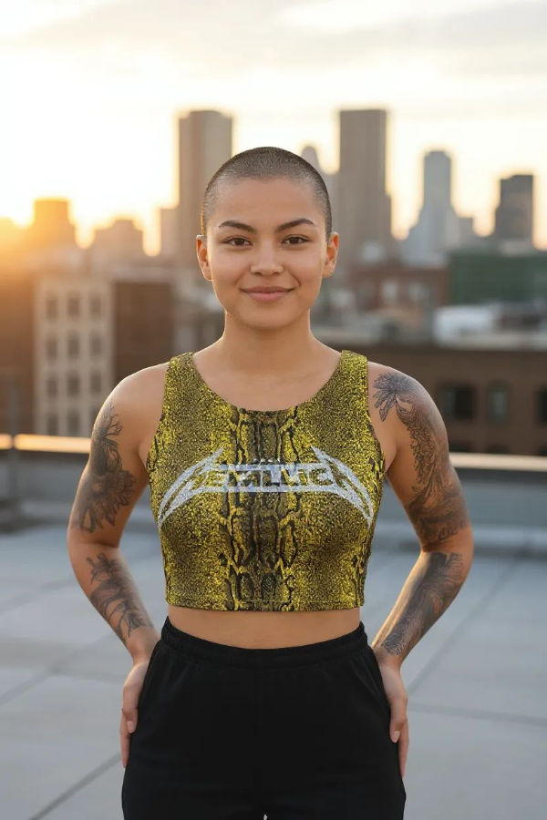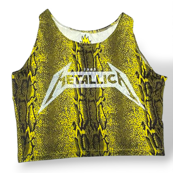 De lycra amarilla reptil con estampa Metallica en delantero y espalda
