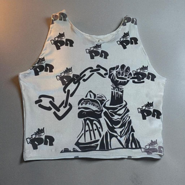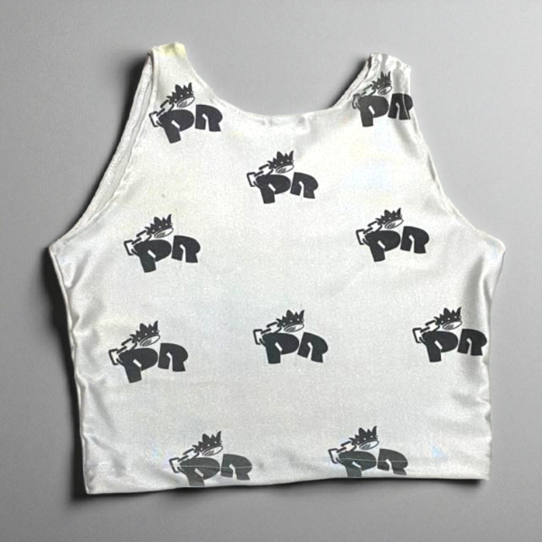 De lycra tricot brillante con estampa Oktubre y logo PR en delantero y espalda