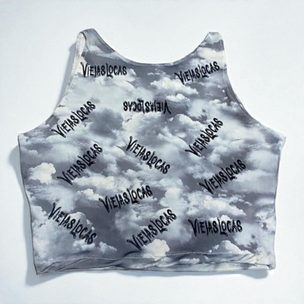 De lycra Batik gris y blanca con estampa Viejas Locas en delantero y espalda